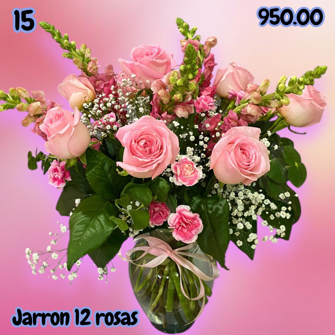 Un lindo jarrón con 12 rosas rosas, acompañadas de margaritas y delicado baby breath, que le dan un toque fresco y muy bonito. Es un detalle elegante y tierno, ideal para regalar cariño, celebrar una fecha especial o sorprender a alguien importante.
